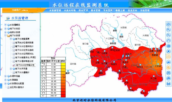 6)水位監(jiān)測信息分析系統(tǒng)可對數(shù)據(jù)進行存儲、分析、生成報表及實現(xiàn)各監(jiān)控計量點分時統(tǒng)計、對比消耗量、做出日周月季年報表、曲線、柱狀圖等。;