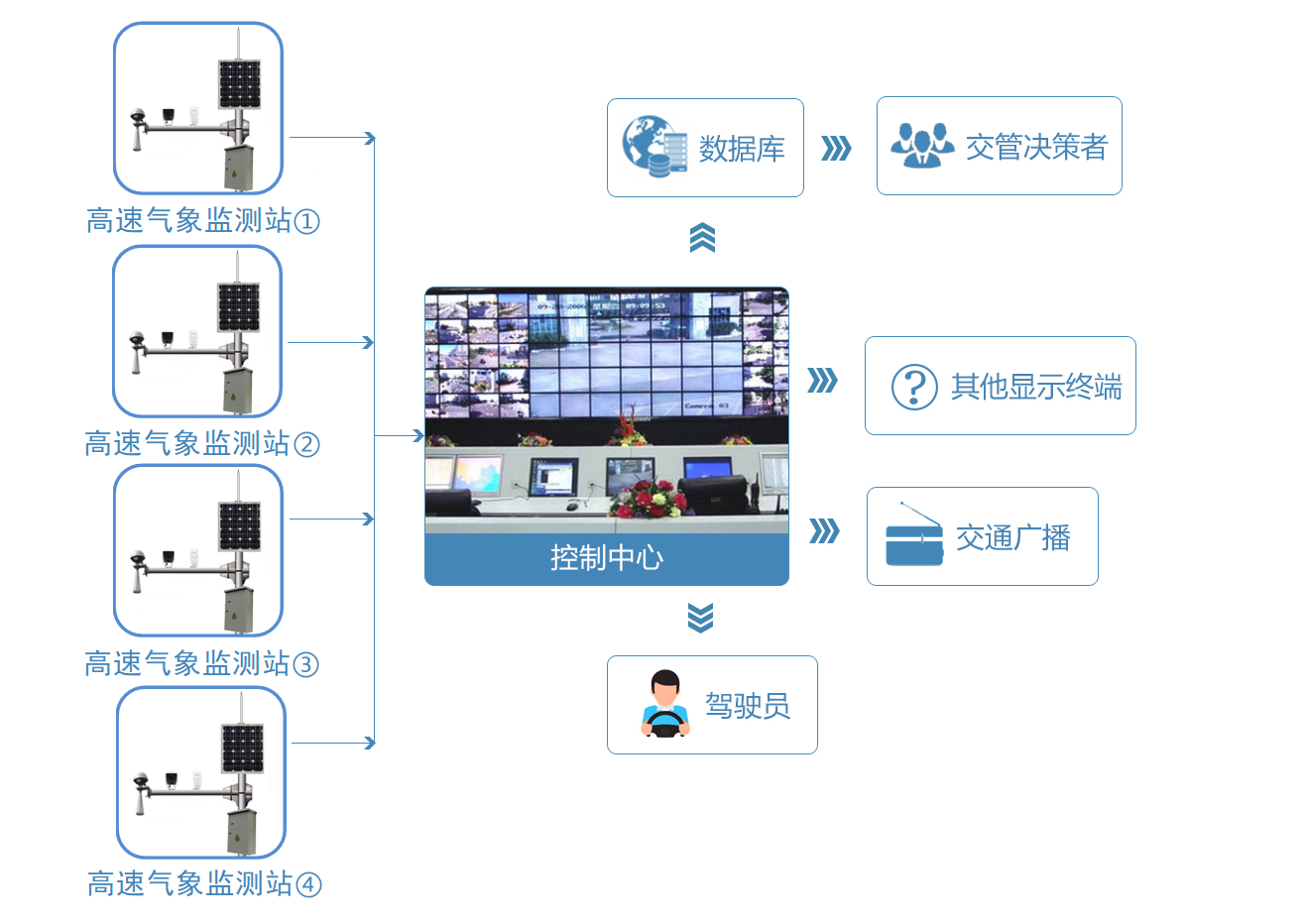 高速公路氣象監(jiān)測預(yù)警系統(tǒng)為本公司專門對高速公路氣象監(jiān)測、環(huán)境預(yù)警特別設(shè)計的一套高速公路氣象監(jiān)測預(yù)警系統(tǒng),系統(tǒng)主要由路面狀況遙測分析儀、雪厚測量儀、環(huán)境傳感器、智能數(shù)據(jù)采集器、專用氣象安裝支架組成??赏ㄟ^4G(兼容2G/3G)無線模塊或信號線實時傳送監(jiān)測數(shù)據(jù)到后端控制中心的平臺上。確保及時發(fā)現(xiàn)各路段及關(guān)鍵點的路況:是否有雨雪天氣,道路濕滑狀態(tài),是否有結(jié)冰和積雪等狀況,為氣象和交管部門提供準確可靠的科學(xué)決策依據(jù)。當出現(xiàn)積水、結(jié)冰、積雪、霜凍等狀況時,能及時發(fā)出警示信息,通過多種方式告知管理人員和駕駛員,以提高高速公路安全行車水平。該系統(tǒng)除了實時提供路況氣象信息、大氣能見度狀況數(shù)據(jù)來保證行車安全,還可以借助對交通道路氣象和能見度數(shù)據(jù)的長期監(jiān)測,進行數(shù)據(jù)分析后可為后續(xù)高速公路的管理決策提供重要的參考數(shù)據(jù)。